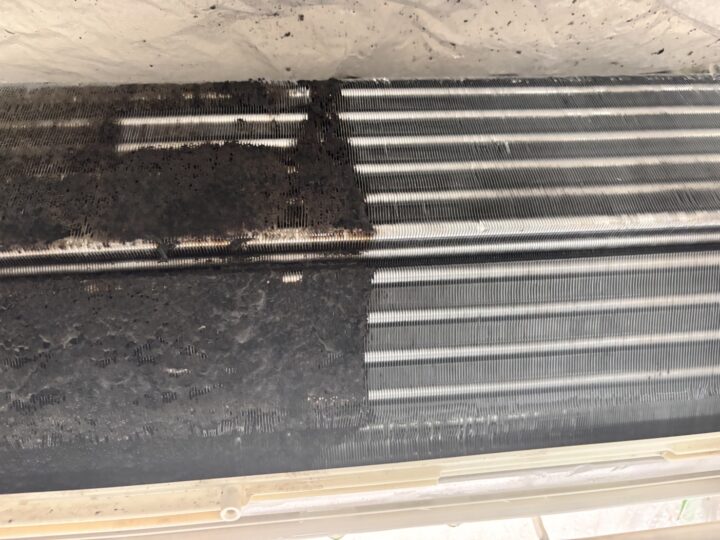 長年使用してたが年々効きが悪くなっているとご相談を受け、アルミフィンにこびりついた埃やカビを丁寧に施工したところ、その後は快適に使用しています。とお声をいただきました。